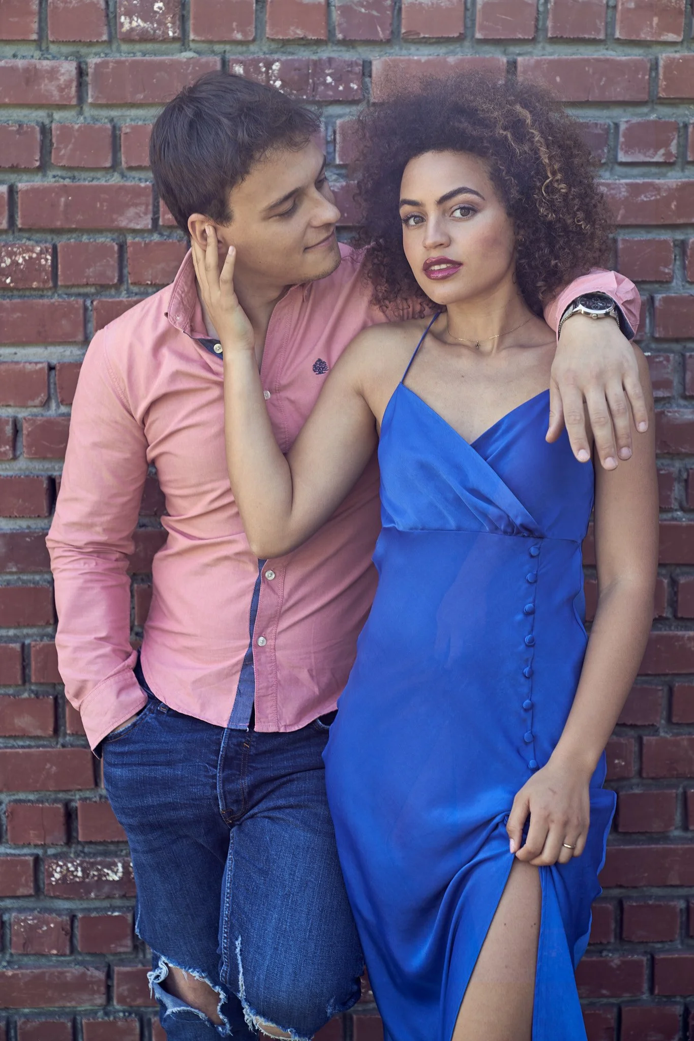 Maar een liefdesfotoshoot kan evengoed een kans zijn om met stijlen, kleuren en sferen te experimenteren — zolang de styling maar afgestemd blijft op het karakter van het koppel. In dit type editorial koppelshoots werken we vaak met meerdere looks die elk een andere kant van de relatie tonen: van speels en ontspannen tot glamoureus of zelfs vintage. De kunst is om een balans te vinden tussen visuele impact en emotionele echtheid.